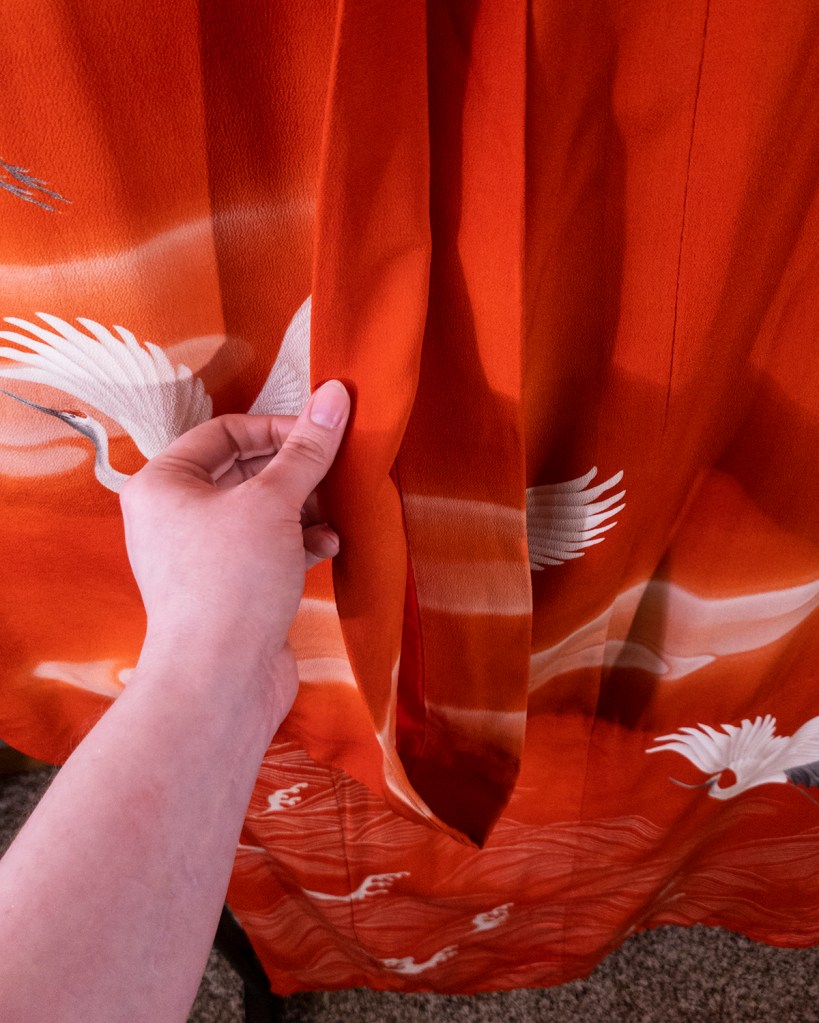 This was a purchase I made domestically. Most of my kimono collection is actually imported from Japan directly–typically through auction. Buying kimono from here in the United States can be a bit of a gamble, and I’ll go over that in other posts, but I think the person who owned it the longest understood what it was. It has been very well cared for.