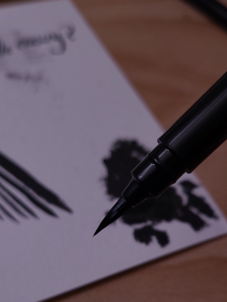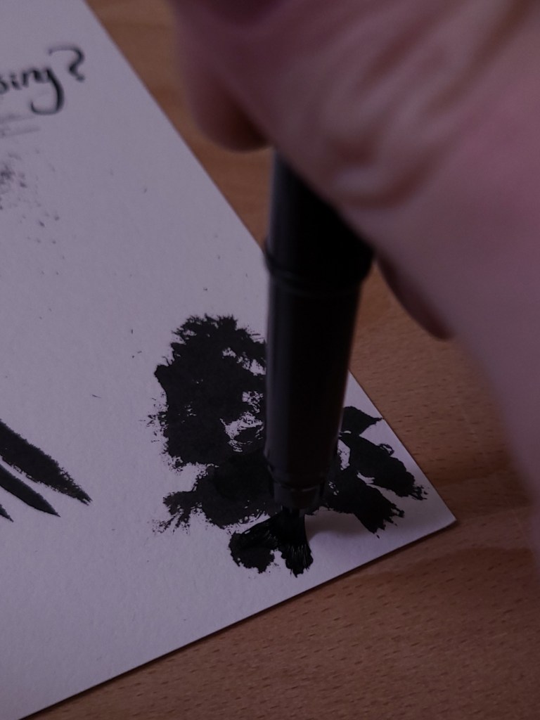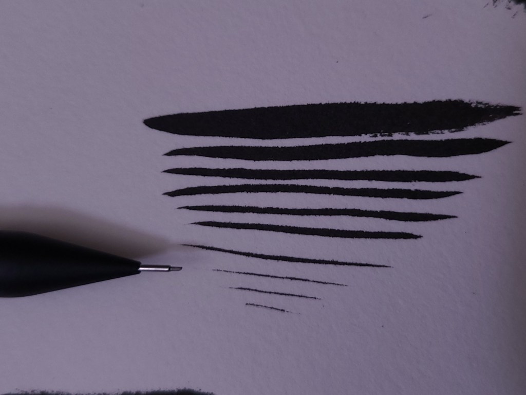 As I mentioned, this pen has nylon bristles. And they will take a beating and come back for more. Unlike natural hair bristles, if you smash the crap out of these against your paper–for whatever reason, I’m not here to judge–they will go back to a nice, dainty point when they resaturate with ink. Have a look at the beating these will take. I literally smashed it into the paper with a nice, healthy THUD every time for this shot. Came right back to a point.