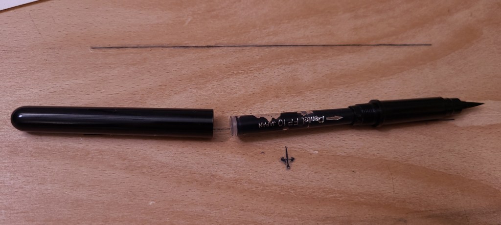 The line thickness test is garbage because I’m doing it on rough paper and I’m feeling much too lazy to do it on something smoother. *COUGH* I mean, I want you to see how fine of lines you can actually get on heavily textured paper and I totally did it like this on purpose with a lot of forethought. Yeah. That one. As you can see, you can get some pretty fine lines out of this, even on rough paper. It’s worth noting that I did the line thickness test AFTER I did the smashing of the nib. It’s pictured here with a .5 mechanical pencil for scale.