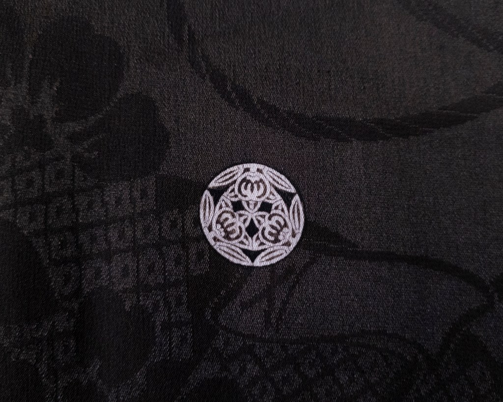 Today I get to talk about one of my favourite features of vintage kimono: rinzu. Rinzu is the term for woven patterns in the silk. Think of it as jacquard or damask. A soft shimmer of traditional patterns embellished all over the body of the kimono, oftentimes a continuation of the kimono’s motif. Rinzu is still fairly common, but I feel like there’s a certain luster to vintage and antique examples. Newer silk kimono–which I also love and adore and have several of in case we weren’t clear about that–have a stiffness to them that vintage silk does not. There’s a liquid flow; a softness to vintage and antique Japanese silks that’s difficult for me to explain without just putting it in your hands and saying “Feel this, dammit.“