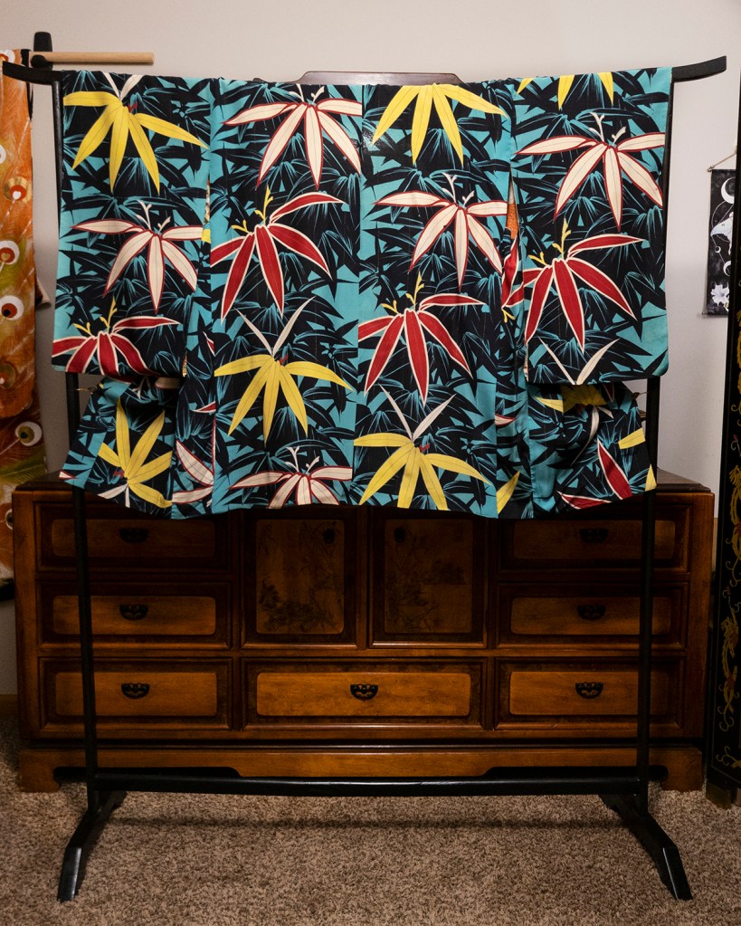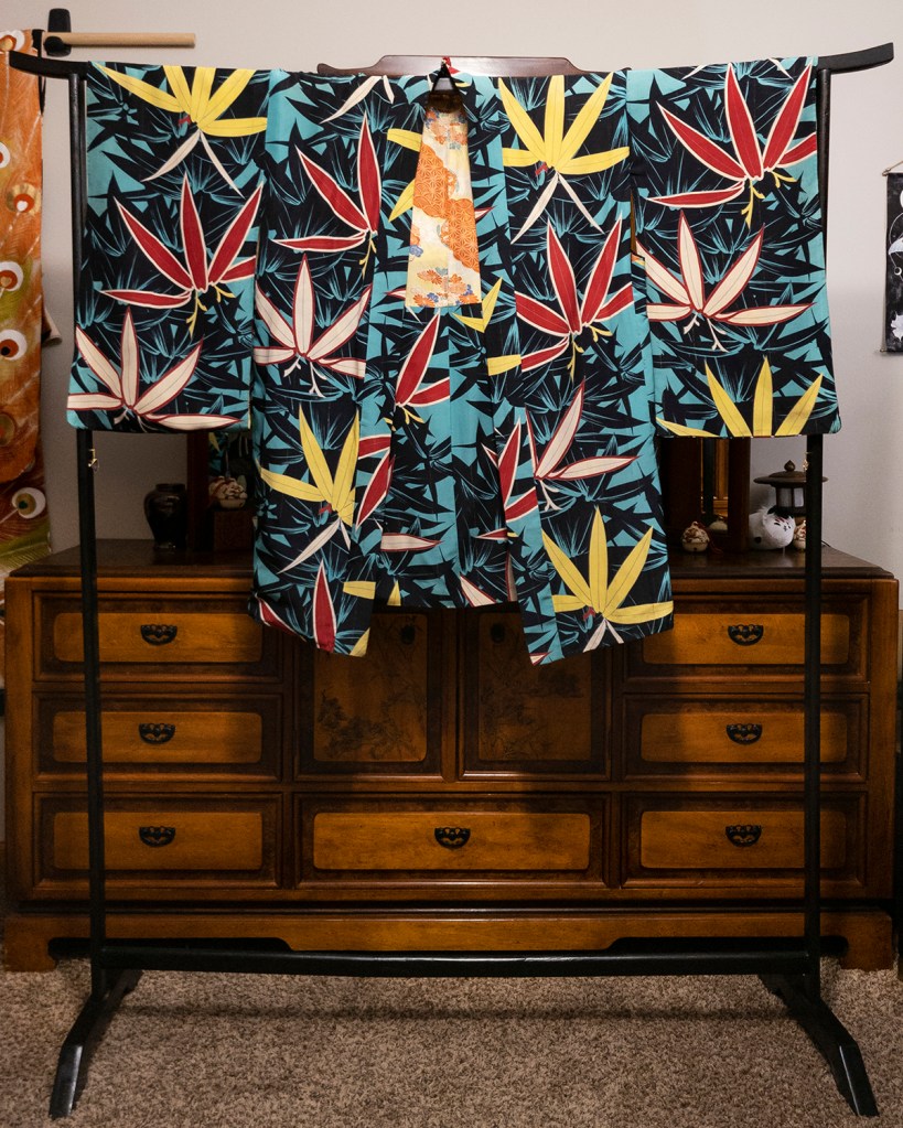 Here’s another piece that qualifies as a restoration that I never bothered to keep any records on. It’s actually pretty safe to say that most of my older kimono qualify as that in one way or another. I usually have to clean something, remove a stain, odor, or resew something on the pieces I buy. That’s the nature of buying second hand, vintage, and especially vintage kimono domestically. For this one, when I first saw it, my heart jumped and I thought to myself immediately: