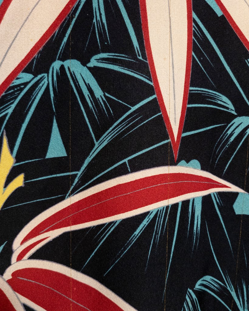 All clean, smells removed, and sewn back together, she is certainly strong and sturdy enough to wear, but I haven’t really yet. I try it on in my room sometimes, but this piece is so delightfully screaming LOUD and I, for whatever impression you might have gotten of me from this blog so far, am actually quite shy about such things. I really should, though. It would be an absolute crime for this one to live in a closet, and once I spend a lot of time repairing something, I get really attached to them. Now I have a mental image of wearing it somewhere, and someone saying something about it, and I would just absolutely shove the silk in their face and scream “THANKS I FIXED IT MYSELF” and then probably bear mace because they’re too close to me. That’s like 90% a joke. I don’t carry bear mace.