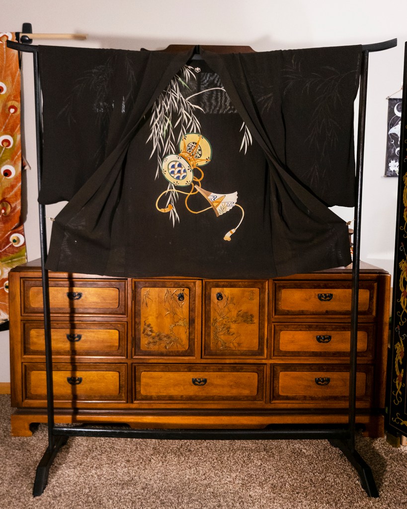As I finish this post, I can’t help but glance down at the clock in the corner of my computer screen. Blah blah blah past midnight normal people sleeping hours whatever yes–but more the date. It’s 2021. This haori dates from the mid-1920’s. Only a few short years away, she’ll be 100 years old. I often take a moment to think about that, because there are several pieces in my collection that are this old and older, and yet I have them. I fix them up, or clean them. I wear them out and love them. They’re 100 years old, and still bright and vibrant as the day they were finished. All they ask from me is to keep them clean, stitch them back up sometimes, or not freak the fuck out if they move some shit around on me. I think that’s a pretty fair trade.