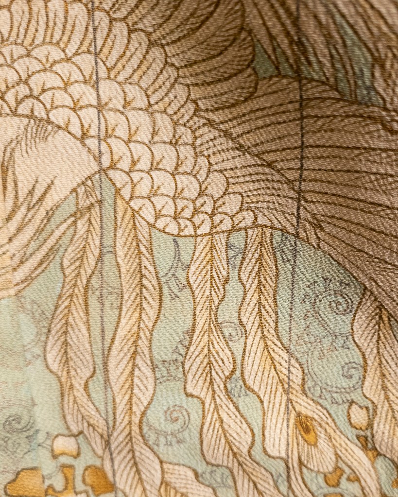 Since I have the uchikake, it’s time to hunt down the other bits. It’s not like I don’t already own some things that technically qualify as wedding attire, but I didn’t choose them for myself as though I was choosing my own wedding dress. I’ve literally never done that before. It was hard, man. Scrolling through pieces, I saw this one, and good god. This majestic beast. And it needs me. It had so many surprises for me when it showed up just earlier today, and I’m going to take you through them with me.