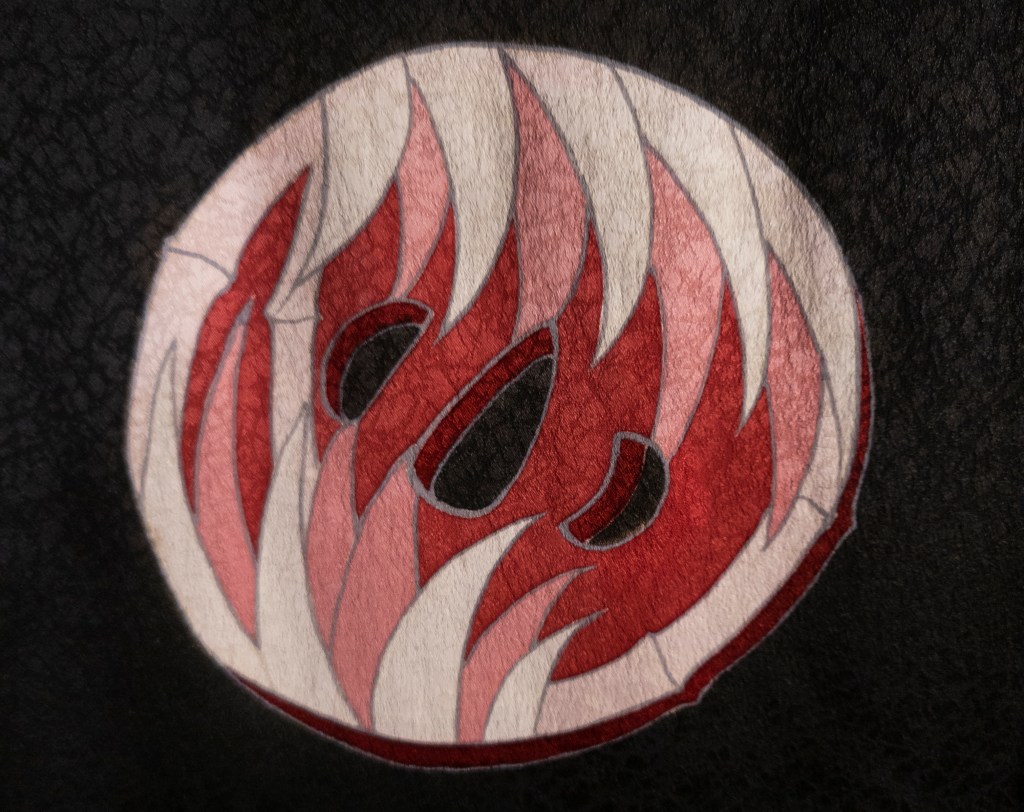 Kaede (maple leaves), kamon, magatama (a treasure, it’s one of the holes)