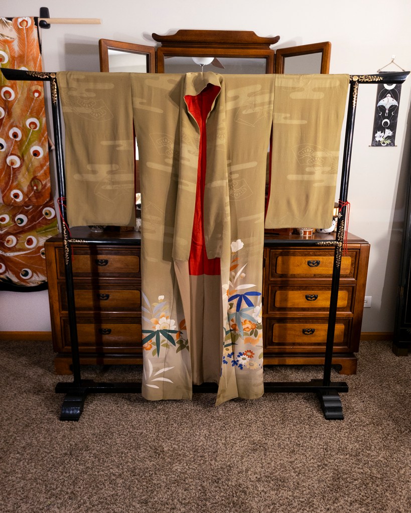 Fortunately for me, this kimono wasn’t even stained anywhere that I could find, let alone a restoration project. So I didn’t have to resort to licking anything to try to figure out what it was. That means I’d be stuffing it in my mouth out of joy as opposed to necessity, and I keep insisting that I’m a normal adult human.