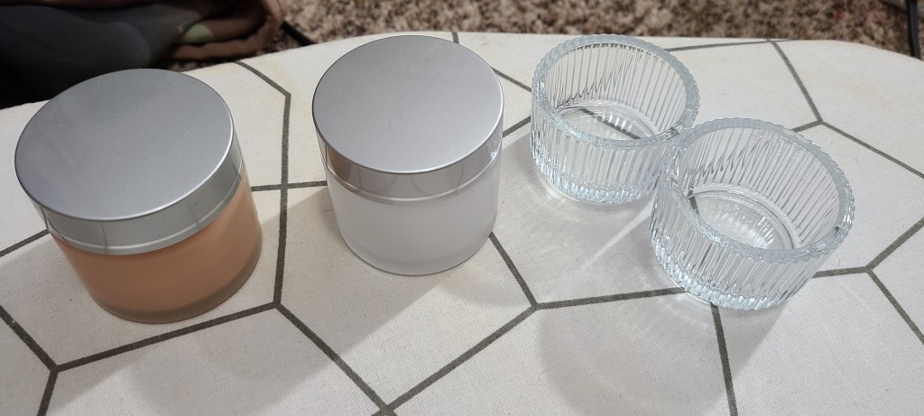 They are all made of glass. The two without lids are actually tea light candle holders I got from Ikea for 99¢ (USD) a piece, and you really can’t beat that. The two with lids are cosmetic containers, and I use them to store large custom mixtures that I encounter a lot. And you know what? This color I’m about to replace actually shows up a lot on antique kimono. Sometimes it’s a little warmer, and sometimes it’s a little colder in hue, but having a base that I can just adjust a little already made is fucking swweeeeet.