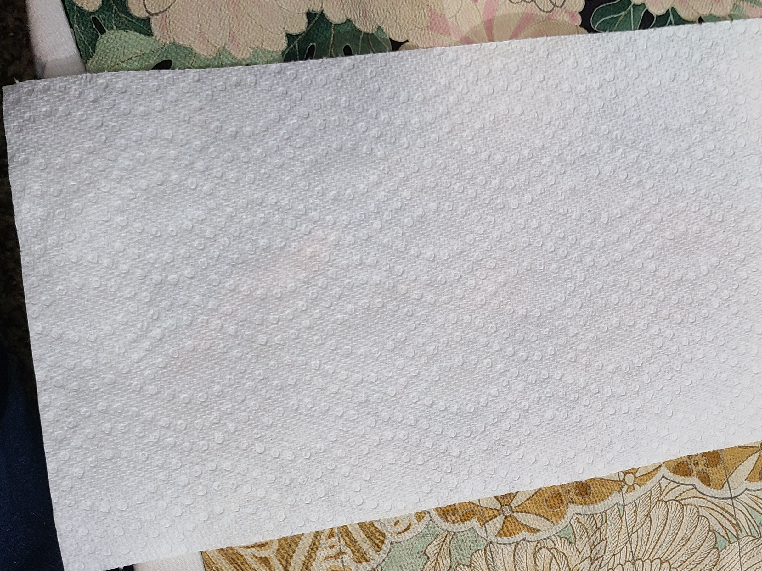 So I put some of my premixed shit in one of the short glasses and then played with the color a bit until I got what I wanted. I sample it on a paper towel to compare. Never, ever, EVER experiment on your kimono. Or I’ll kill you. Abuse the paper towel, that’s what it’s here for.
