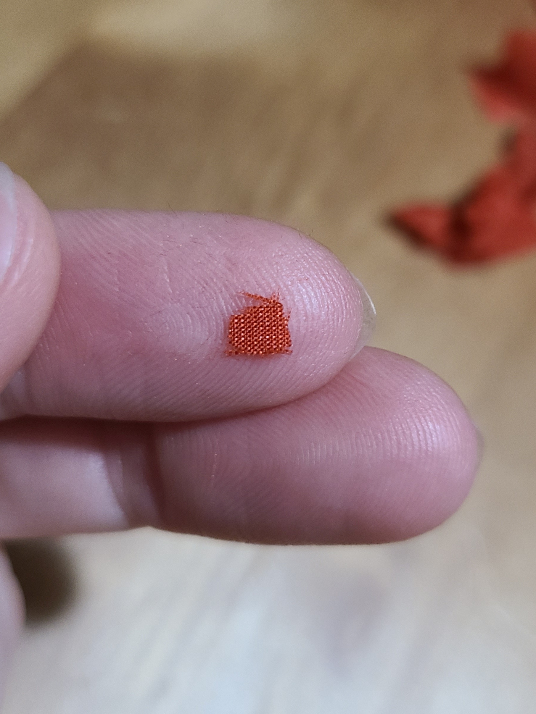 There is the same piece of silk after rolling it between my thumb and finger for about thirteen seconds. I don’t know, I didn’t actually count. It wasn’t very long.