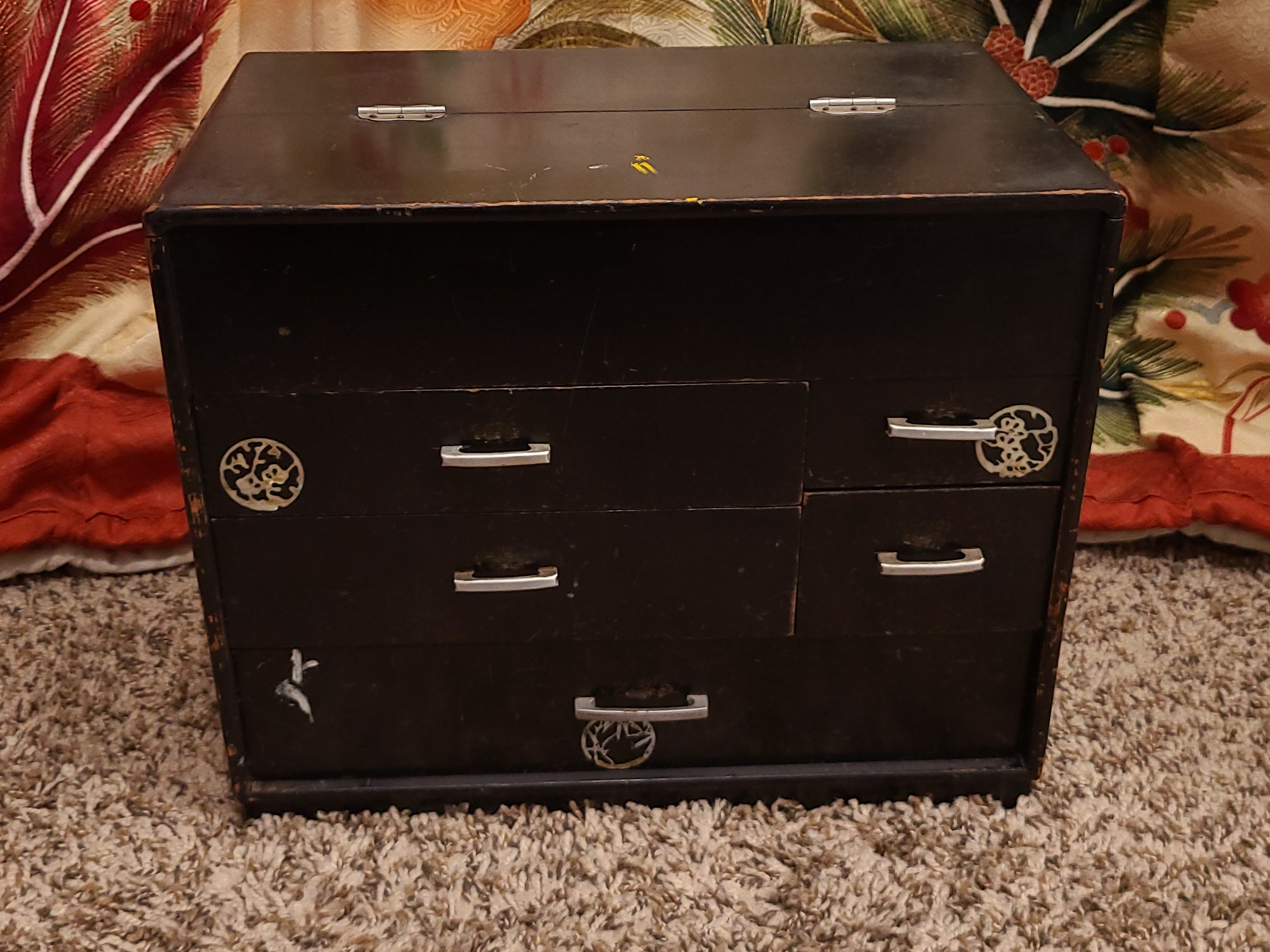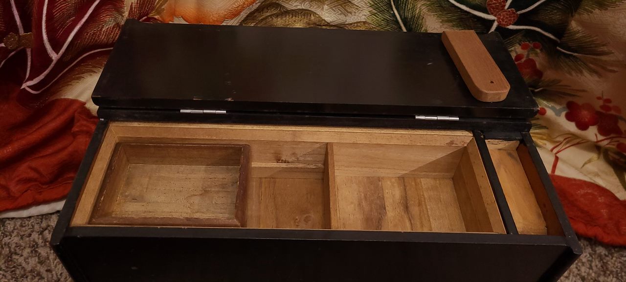 As the title suggests, this is a “Haribako,” or a sewing box. As some of you know, I already have a haribako. This one is bigger. See?