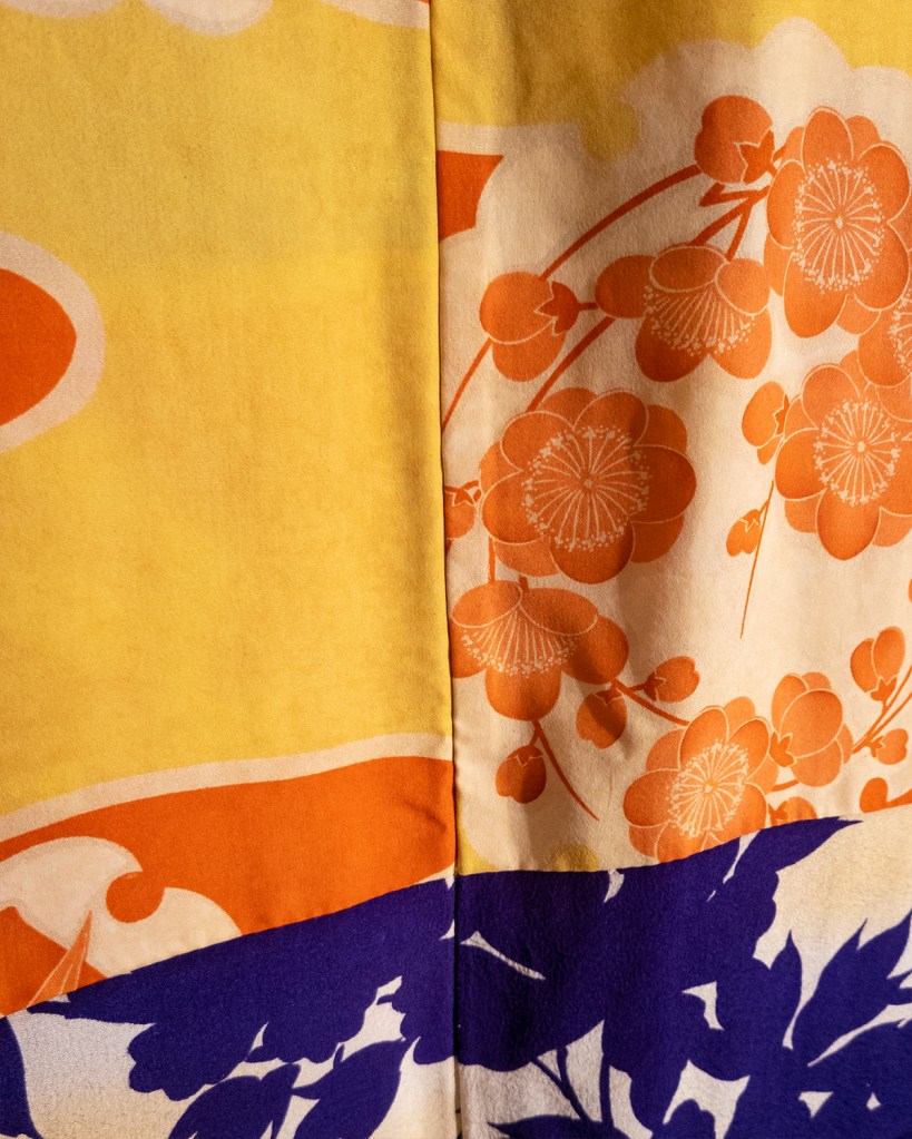 Anyway! As I’ve mentioned like several billion times now, buying in the US is always something of a gamble if you’re not buying from an established kimono-specific shop. Some of you have heard me refer to the US kimono market as chaos and anarchy, with varying usage of all caps and screeching. You know, normal conversation. And the reason I harp on that so damn much is because condition is a roll of the dice. I am always entirely at the mercy of whatever pictures the seller decided to take, and whether or not they could identify a condition issue successfully. I’ve seen shit with holes in it be called “immaculate.” I had a big dead spider fall out of a sleeve once. You could say that my definition of a thorough inspection differs greatly from some others’.