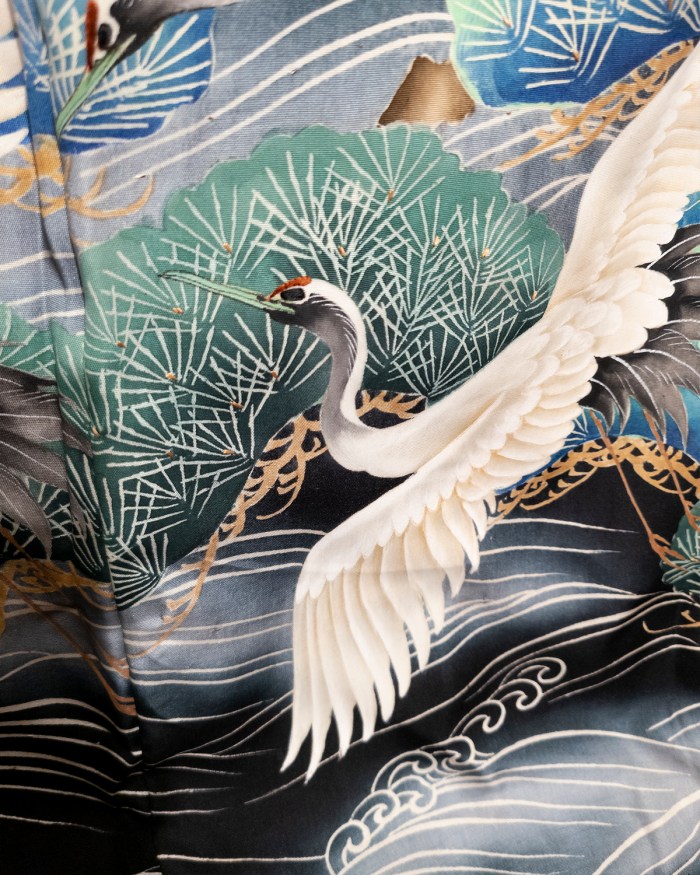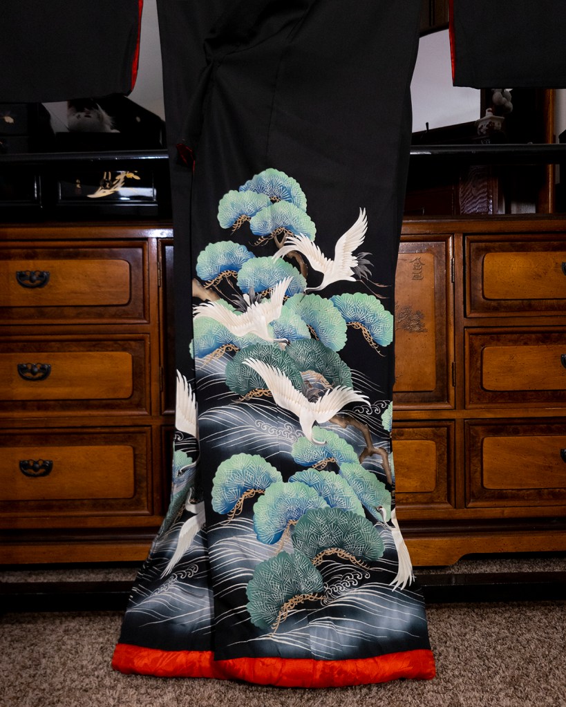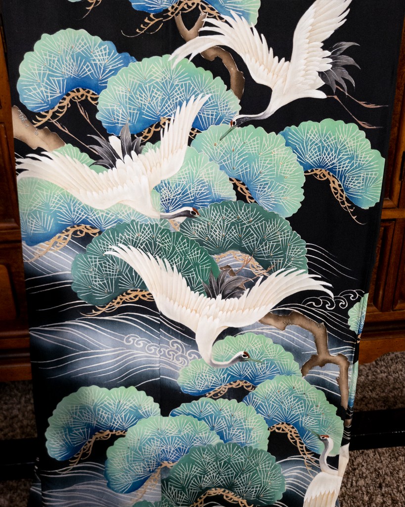 Which then leads us to the outside of this magnificent motherfucker. The seller photos made it look a little washed out and I was okay with that, but it’s not. It’s black. It’s deep, dark, perfect black. And the detail in the wings of each tsuru (crane) is just candy sweet.