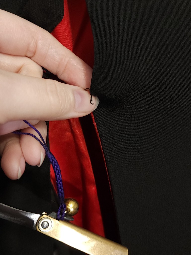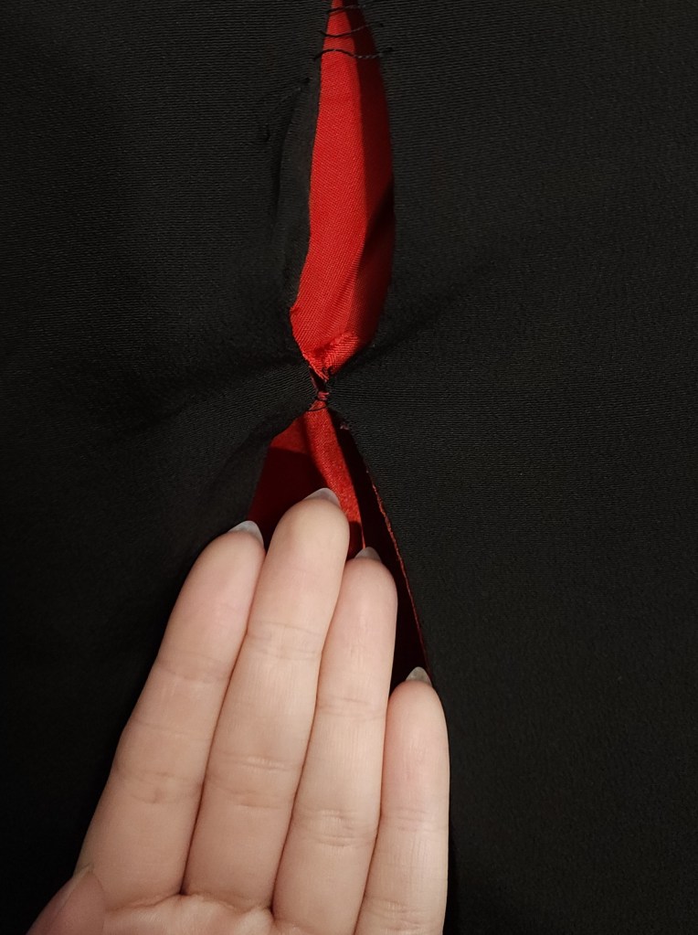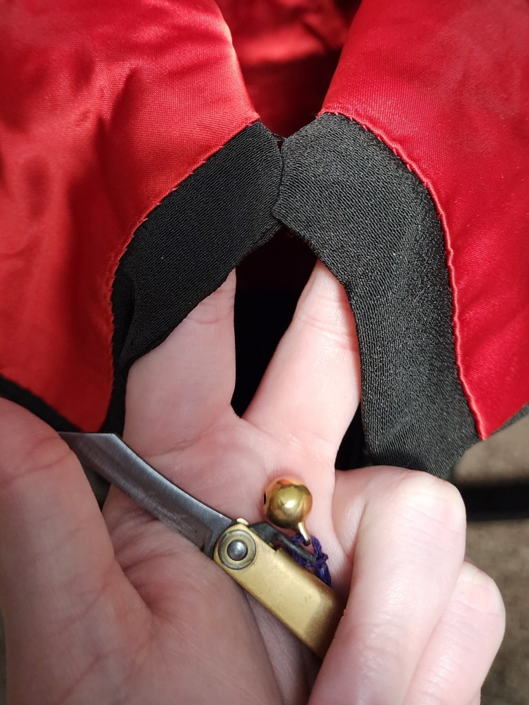 First, the very bottoms of the collar were sewn together. Because… reasons?