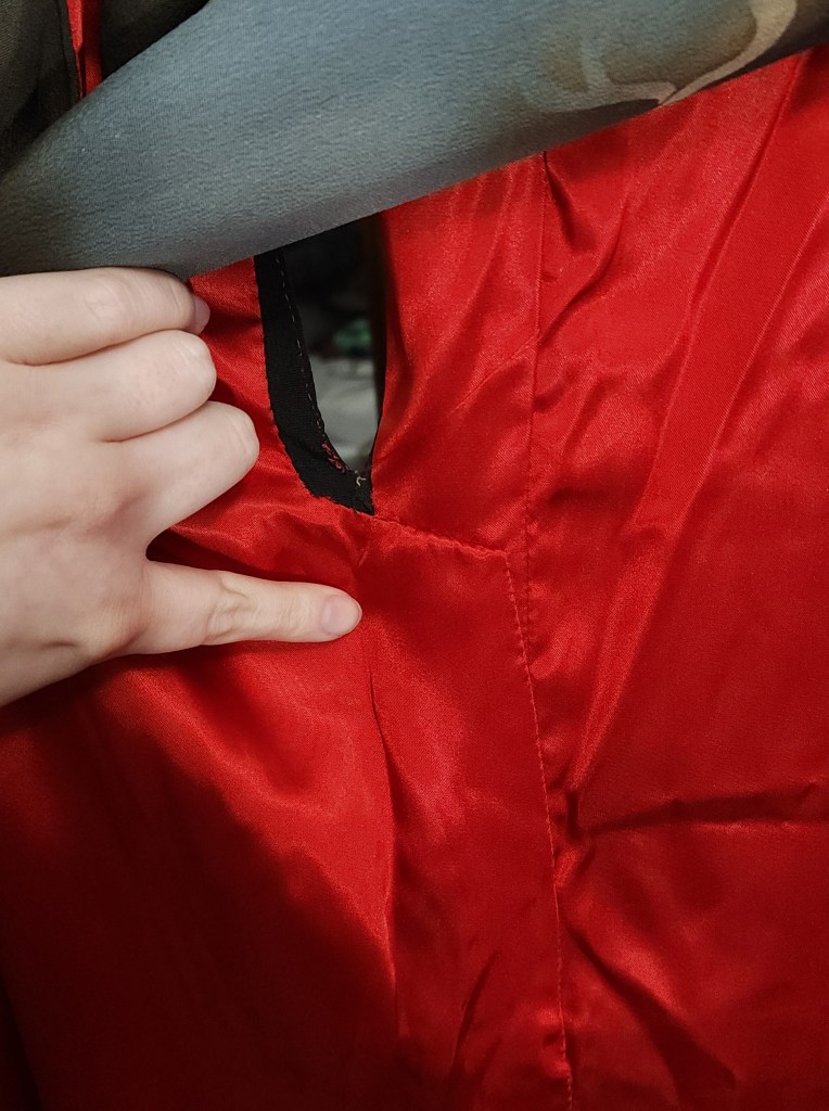 We’ll start with the obvious: those seams are not even remotely correct with the exception of the back seam. The back seam is important for more than structural issues, so it stands out to me that this is the one that paid the most reverence to. Otherwise, though? Shit’s just wonky. For those who come here to learn (I’m so fucking sorry), the lining should be divided into panels the exact same way that the shell is. This lining clearly isn’t. And the seamstress…did their best. But that’s not the only weirdness! It’s time to BURN THINGS.