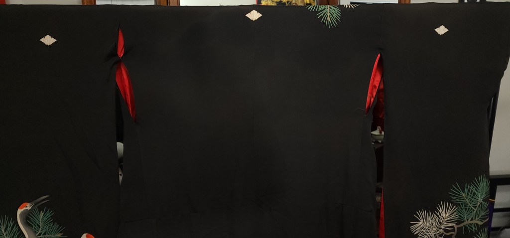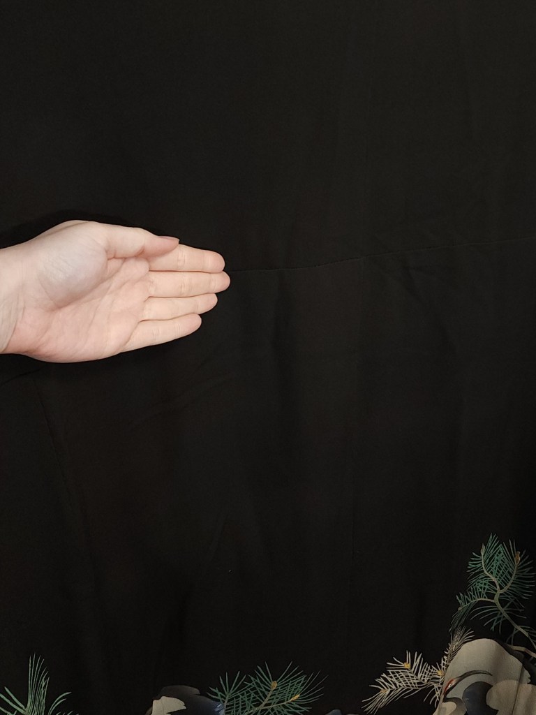 Basically, I made an offer for it, stated my intentions, and without a word of negotiations my offer was accepted and here she is. The seller photos told a story of a kurohikifurisode that needed some tailoring.