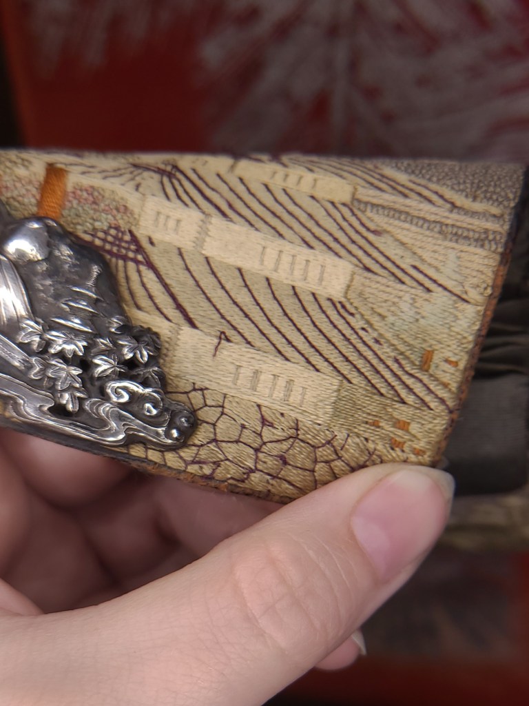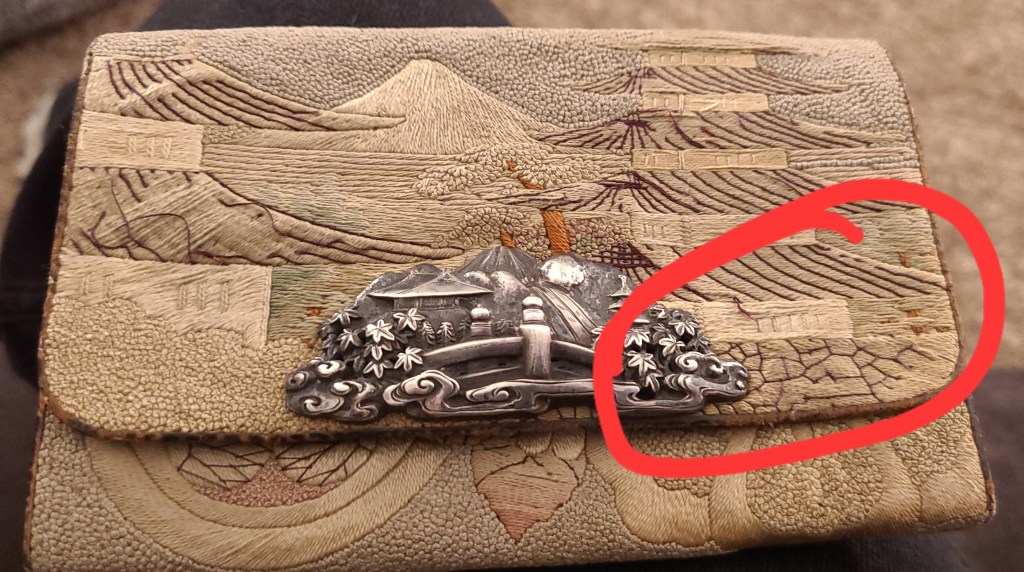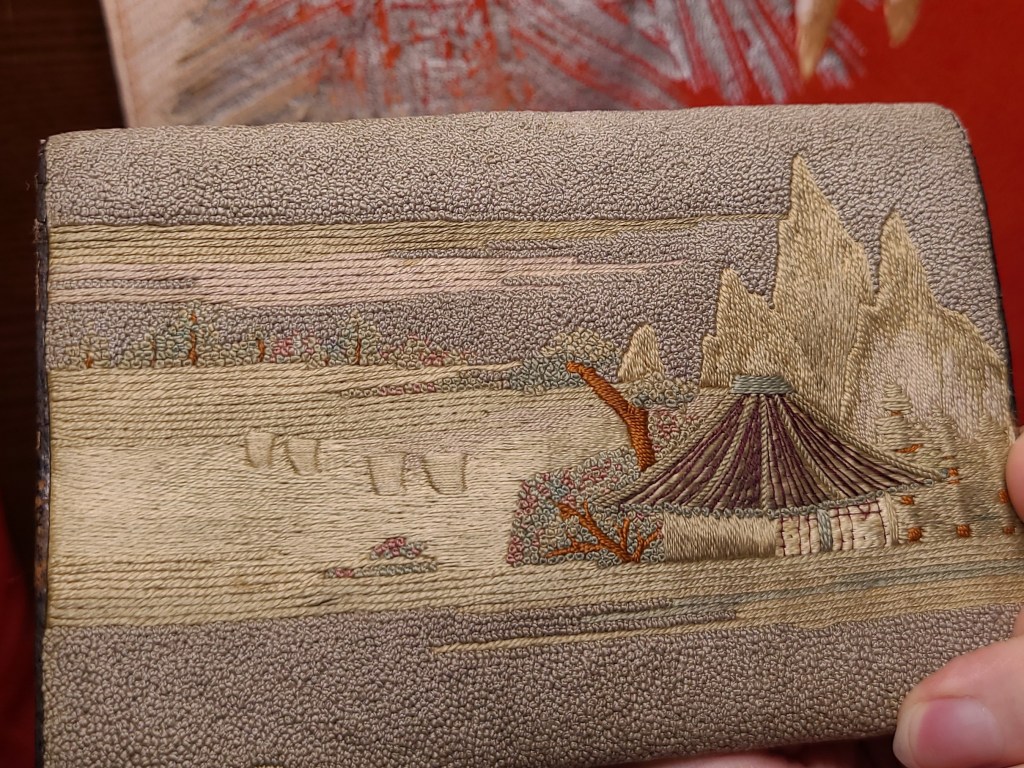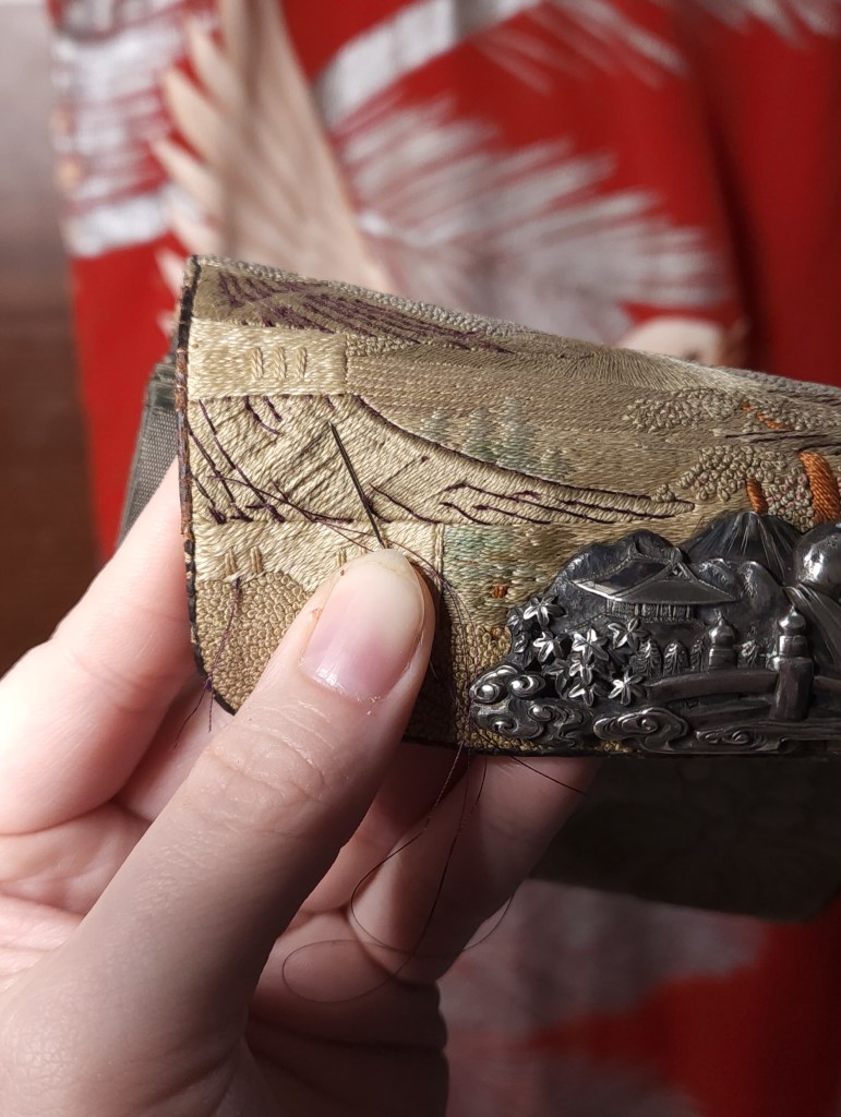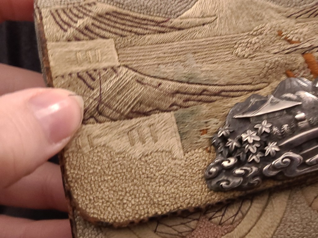 I kind of just did that for several days. It was very difficult because the backing that this is all embroidered to was deteriorating. I stabilized it and took zero pictures of that. You know what else I took zero pictures of? The finished, clean wallet. I just jammed it the fuck into a box and shipped it the fuck off to it’s new home.