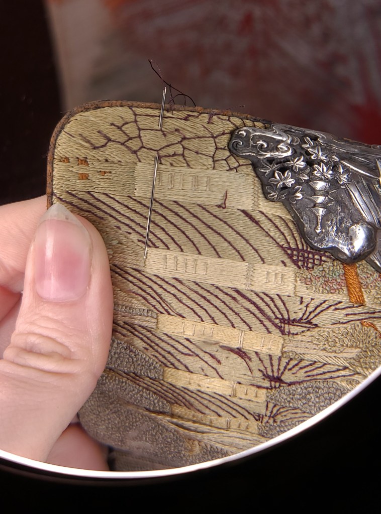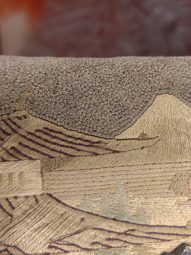 But bit by bit, I recovered the missing line work and broken threads in the embroidery. This involved a very sharp needle, a lot of patience, and a ton of cursing.