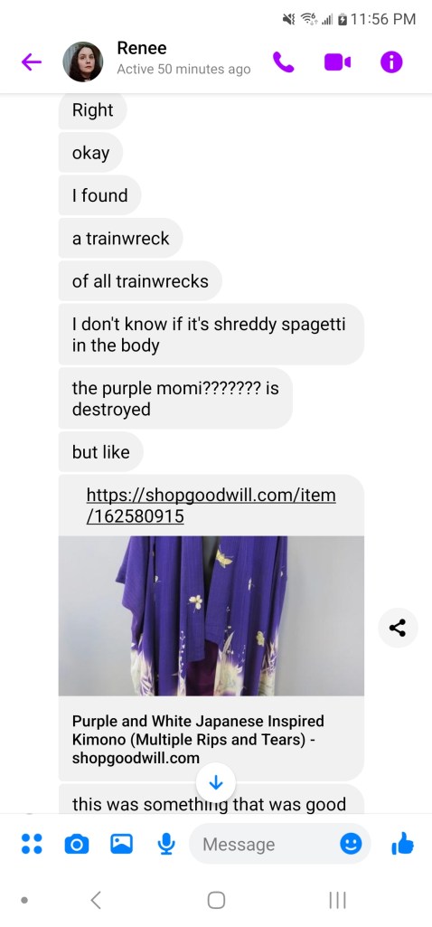 Yes, I wrote “koimono” on purpose. This is not a kind of kimono, I’m just being very clever. Oh so very clever. But other than the super cleverness, the title is very accurate. I suspect internment shenanigans, and I bought this shit from the GoodWill auction site. If you were competing against me for this, I want you to know that if you absolutely regret not going harder for it when you see it now, I understand. But I also want you to know that it’s in good hands.