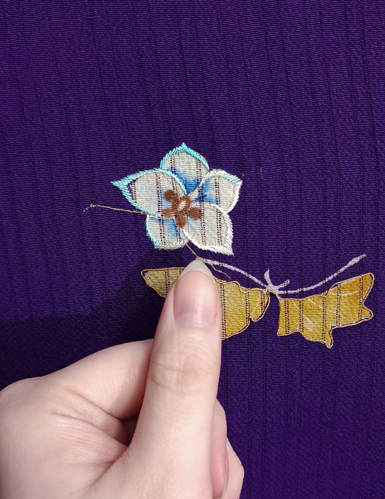 As a side note, did you save the lining? Based on how it was done, I wouldn’t be surprised if this kimono lived in a western theater’s costume closet for a decade or so. Perhaps with a bit of rice starch, it could be used to make coordinating kanzashi? Then again, it does seem stupid brittle.