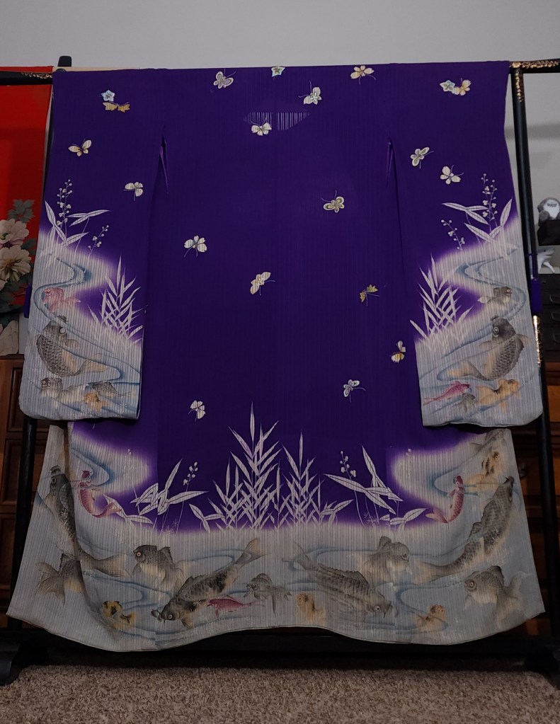 But this Ofurisode!!! Definitely late Meiji, id say around 1895-1915, based on the shaping of the butterflies (cross-referencing my collection) and dyes used. But oh my gosh those fish!!! That water!!! I’m envious in the best way!