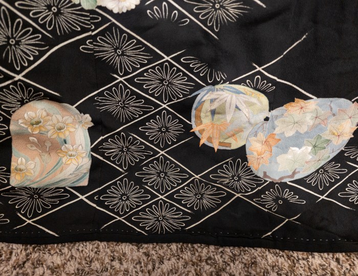 Aaaaaand there ain't no party like a peacock party because the peacock party don't stop! You know what my favorite thing about this antique hikifurisode (a furisode meant to trail) is? The process of purchasing it was basically surrounded by enough misconceptions about kimono to fill a bingo card. Let's go over some of them. … Continue reading What’s The Damage? Fowl Play–Featuring A Conversation About Western Market Insanity