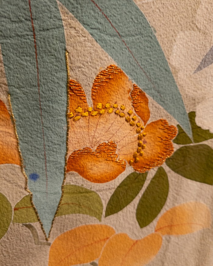 Candy Bright Blossoms And Foliage On Deeply Textured Light Olive Silk. In case you missed it, I am going to goddamn eat this kimono. I'm going to eat it raw. I don't usually go for the dull olive shade (that's what color it is in person, I swear), but just looking at the way those … Continue reading Antique Kimono–Delicious Blooms