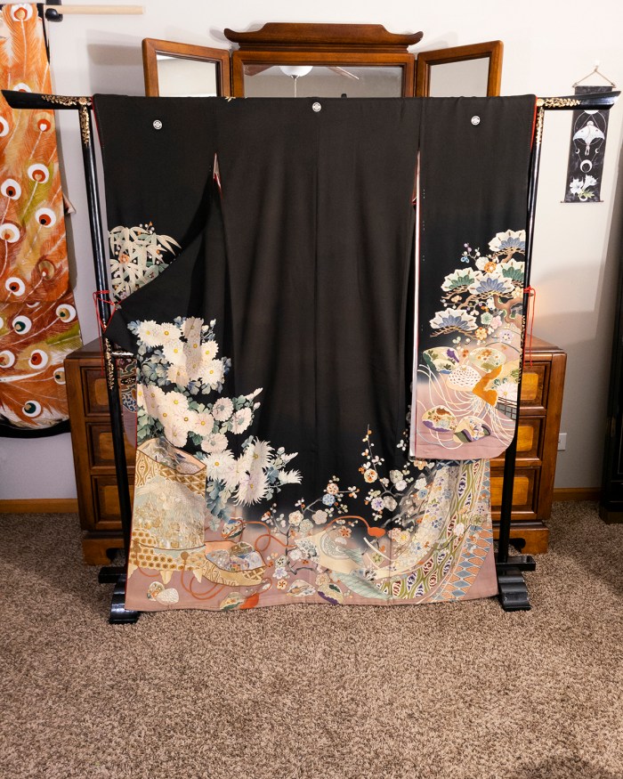 Aaaaaand there ain't no party like a peacock party because the peacock party don't stop! You know what my favorite thing about this antique hikifurisode (a furisode meant to trail) is? The process of purchasing it was basically surrounded by enough misconceptions about kimono to fill a bingo card. Let's go over some of them. … Continue reading What’s The Damage? Fowl Play–Featuring A Conversation About Western Market Insanity