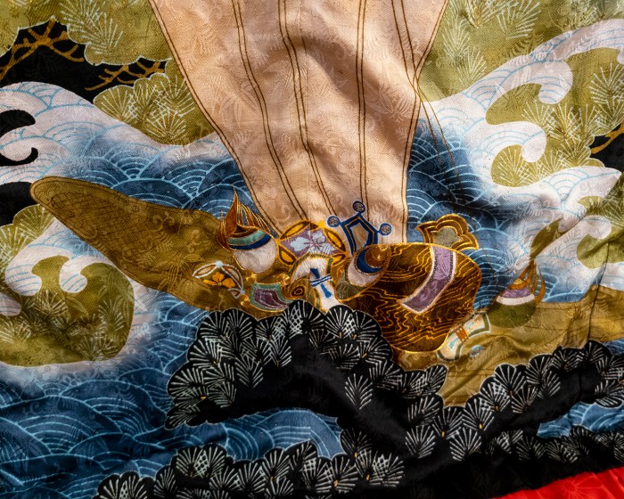 Decadently Woven Black Silk Adorned With Gilded Cranes In Flight Over Treasure Ships. In three days, I will have had this kimono for an entire year. And as a delightful songwriter once crooned, when it comes to this piece, the waiting was the hardest part. Nevermind that I had to sit here and scream at … Continue reading Meiji Takarabune Uchikake–Restoration Complete